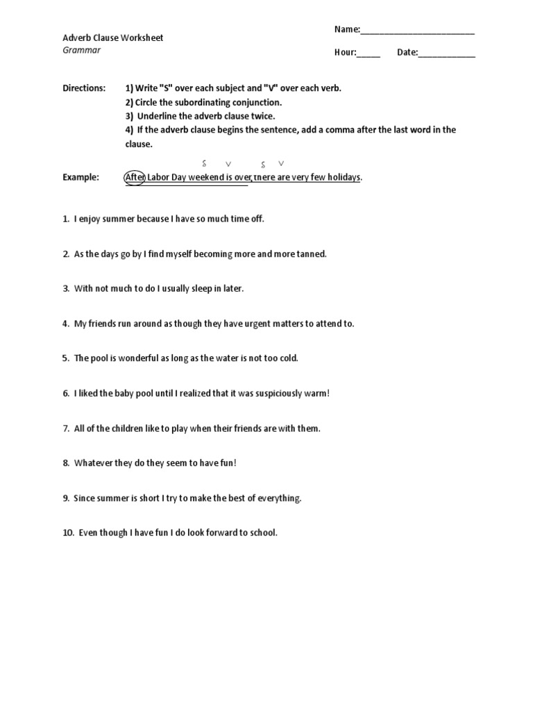 Adverbial Clause Of Place Worksheet : 12 Free Adverb Clauses Worksheets : Adverb clauses, like adverbs and adverb phrases, modify verbs, adjectives, and adverbs.